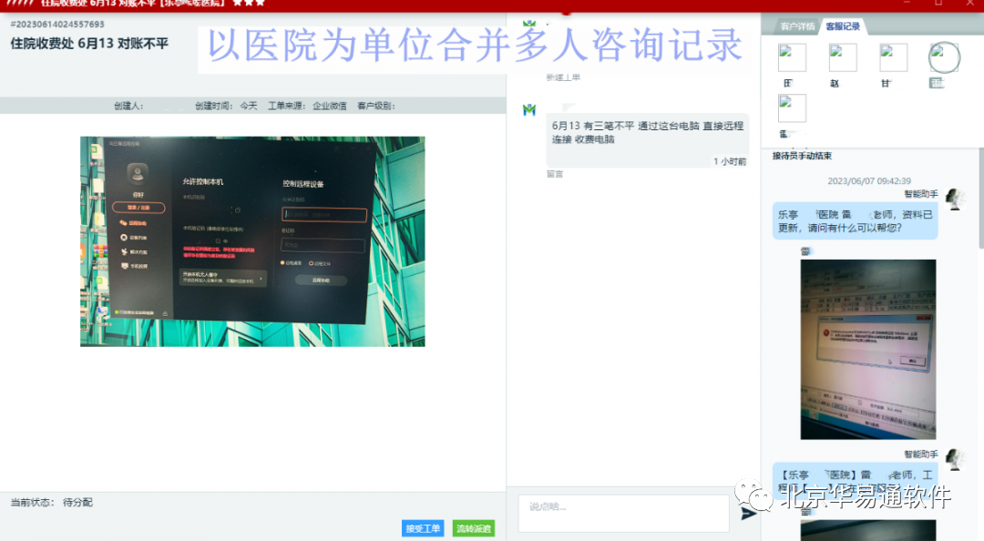 可以自动对接给上一次处理问题的客服,从而更熟悉医院情况避免重复问询医院软件基础情况