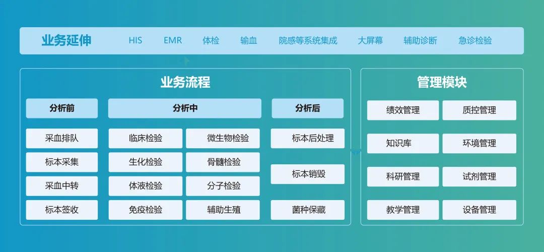 拥有完整的知识产权,能够同其他模块无缝对接,实现检验过程执行流程监控,院内外业务交互无障碍。