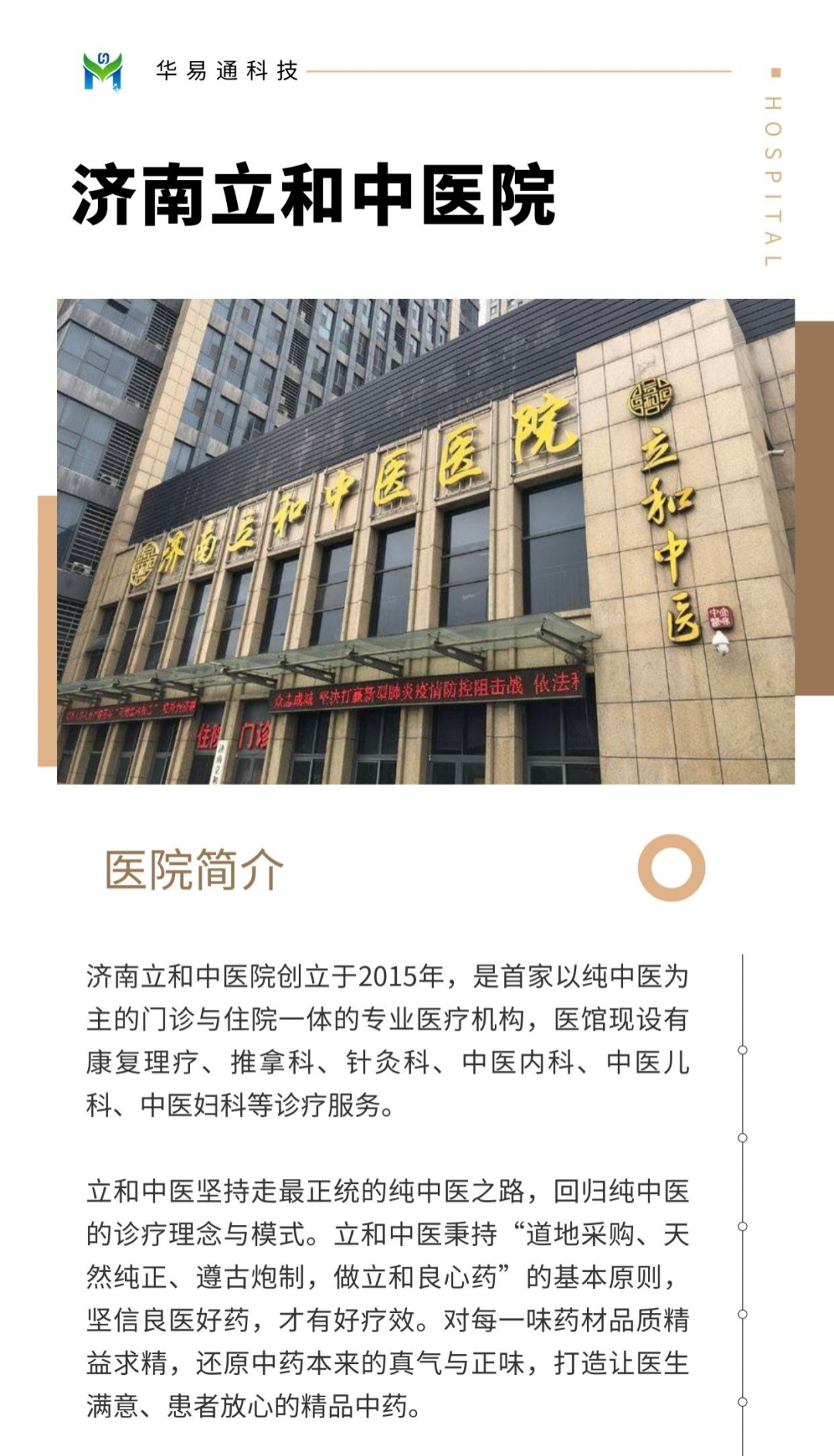 华易通科技携手济南立和中医院,全力打造一体化信息体系